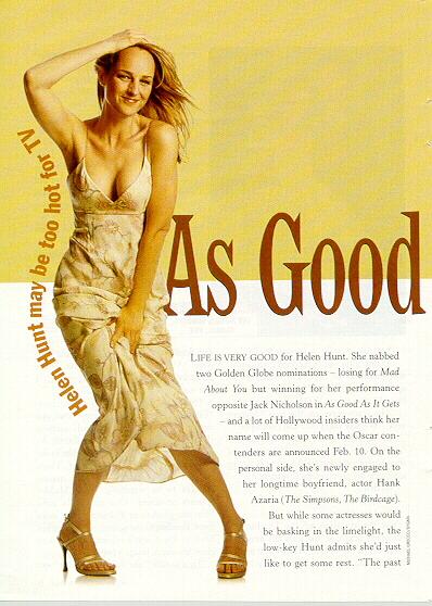 DISCLAIMER: This is a non-profit site for fans of Helen Hunt. Images, sounds, information and comments used on this site are believed to be in the public domain, unless otherwise stated, and are used solely for the personal enjoyment of fellow Helen Hunt fans.